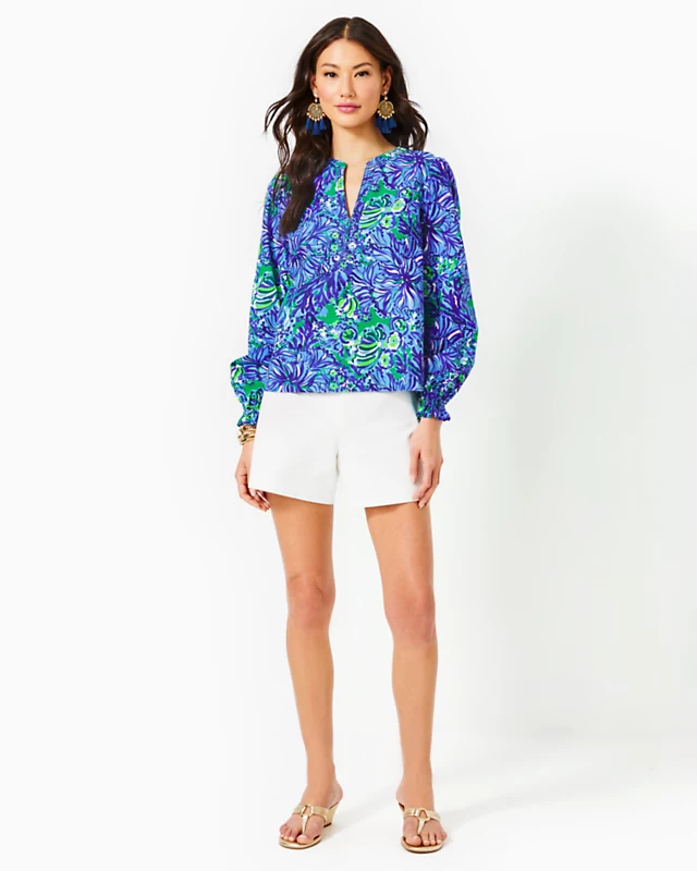 Trapunto topstitching adds elevated detail to the Coulter Top, a long sleeve popover with an easy fit and notch neckline.