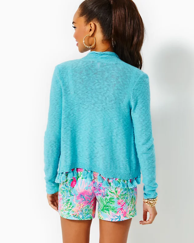 Our Faretta Cardigan makes the perfect long-sleeve layer for your favorite Lilly shift or sleeveless top. This cropped, open-front cardigan is fashioned from soft slub fabric and finished with fun tassels at the hem.