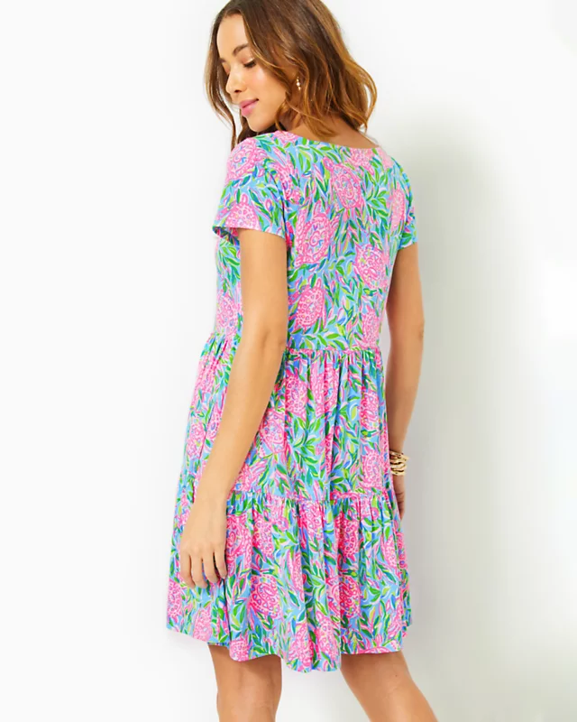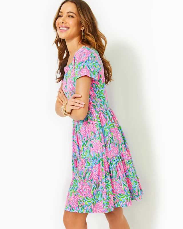 Our beloved Geanna Swing Dress gets a warm weather update with short sleeves for summer! This tiered, above-the-knee swing dress is perfect for days on the go thanks to a crew neckline, side pockets, and relaxed cotton jersey fabric in a lovely Lilly print.