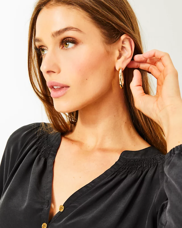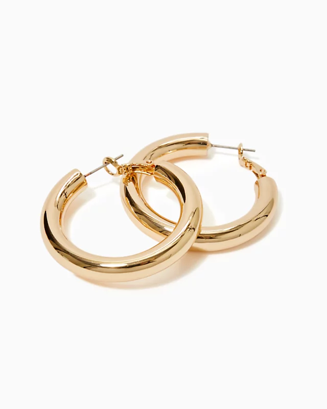 These gleaming golden hoop earrings make a timeless finishing touch for any ensemble.