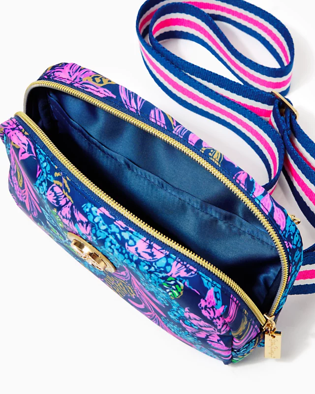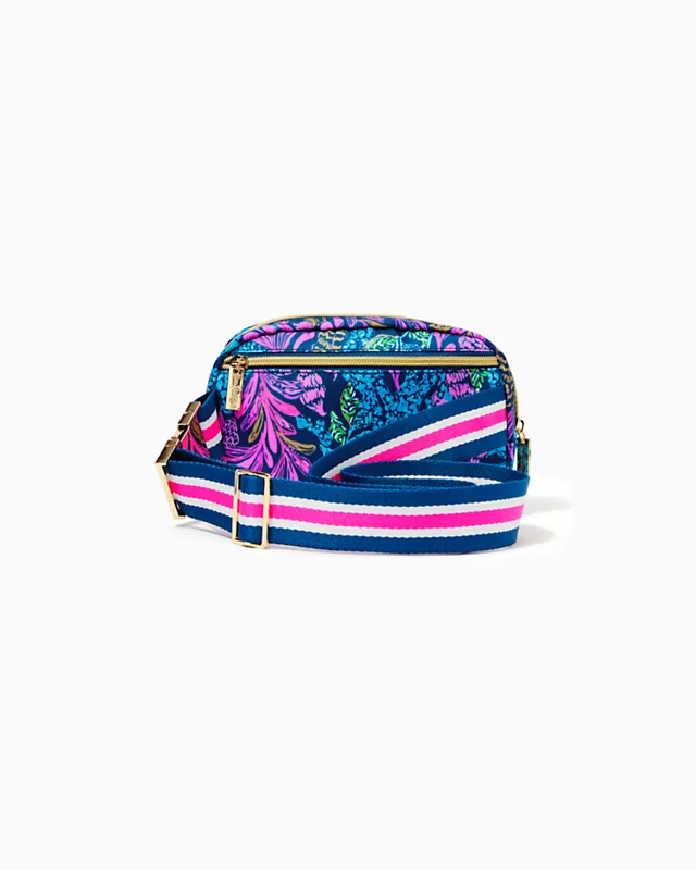 A stylish way to keep your on-the-go essentials handy, this belt bag features the Lilly citrus logo, a zip closure, and a striped webbing strap with an adjustable buckle.