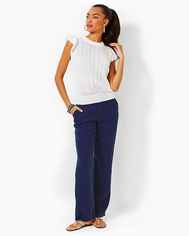Allover mixed stitching and short ruffle sleeves give the Joliette Sweater its airy appeal, making this crewneck style our favorite summer layer.