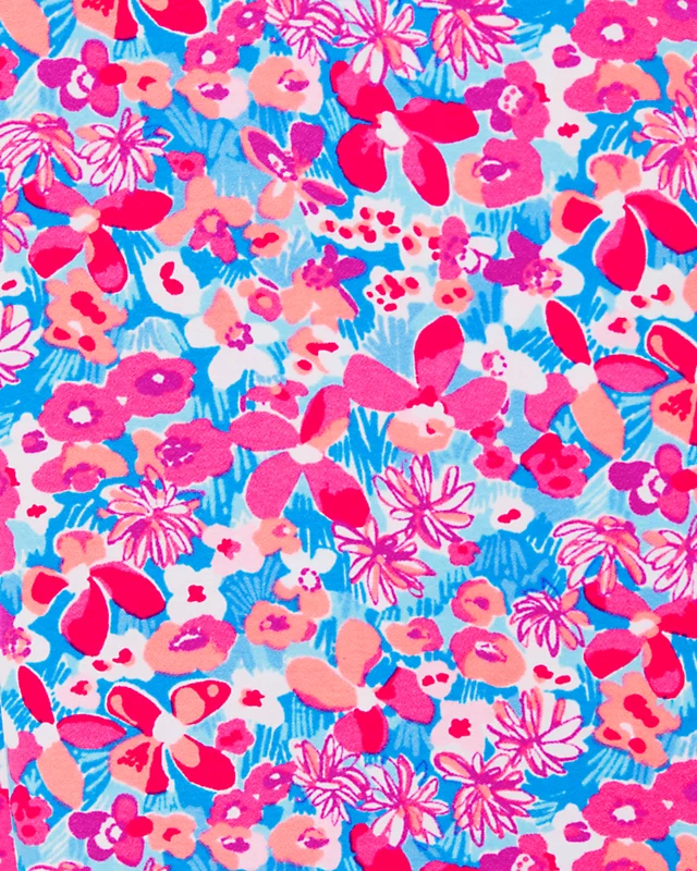 Layered flounces frame the V-neckline of our carefree Linwood Romper. Made from satin back crepe, this prettily printed style features a straight, sleeveless silhouette with side slits.