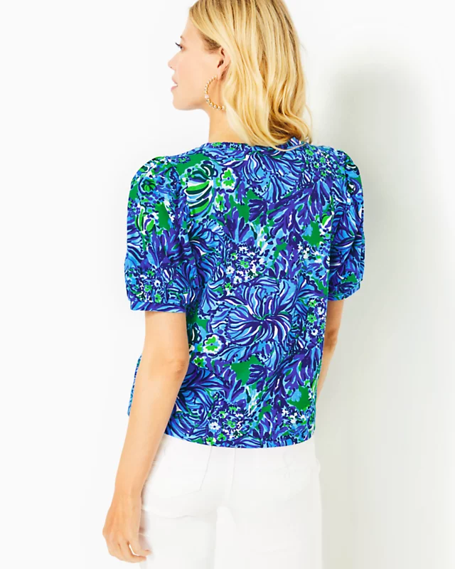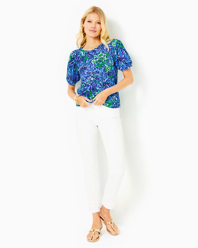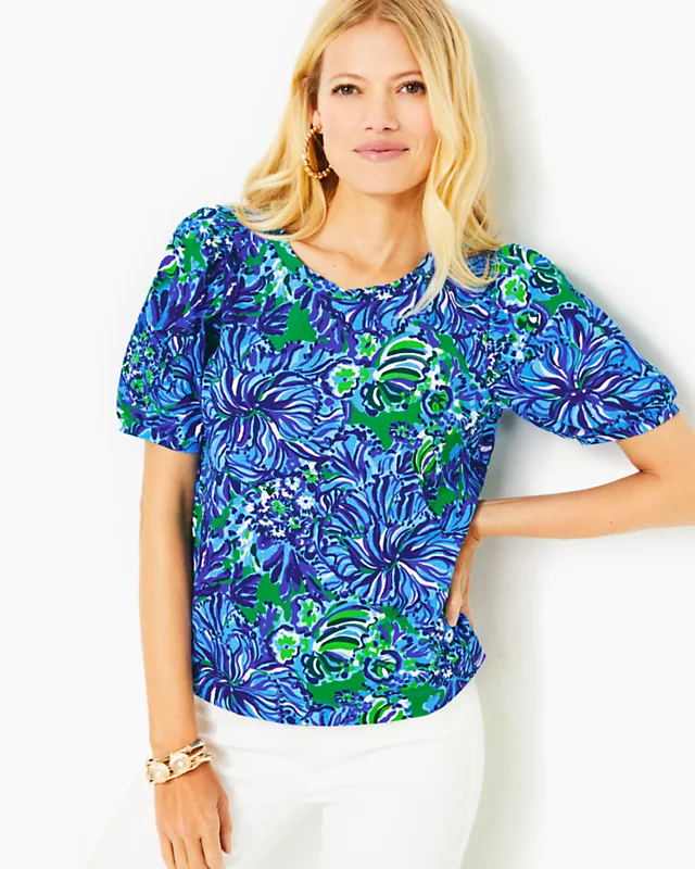 Swap out your classic tees for a pop of print, courtesy of the Rhett Top. A banded crew neckline and short puff sleeves accent this vibrant straight fit style to pair with your favorite shorts or denim.