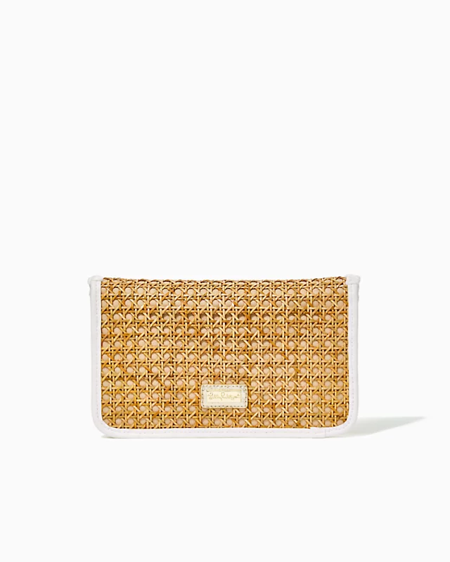 Fashioned from natural cane, this clutch looks right at home in any sunny destination. Whipstitch embroidery and a detachable gold strap make it equal parts versatile and stylish.