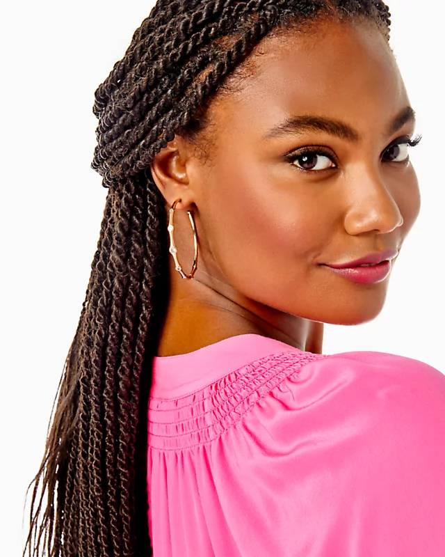 A bamboo-inspired silhouette and crystal details will make the Twilight Hoop Earrings an instant favorite in your jewelry box.