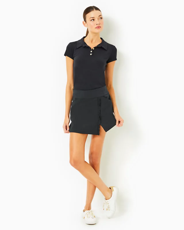 The Beatriz Skort is made from Fairway Performance Twill® with UPF 50+ sun protection and moisture wicking, making it a chic, practical, and versatile addition to your golf wardrobe. This pull-on style features ruffle details and handy pockets on the front, back, and undershort.