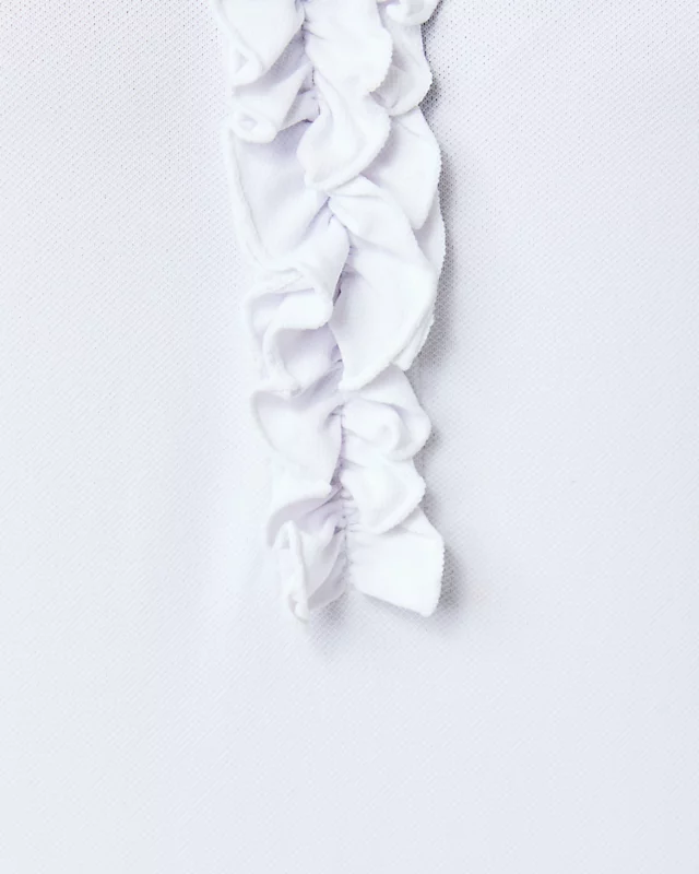 - UPF 50+ Luxletic short sleeve polo with ruffle collar.