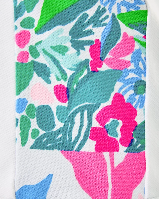 Team up with your little one for some on-court fun with the Mini Mixed Doubles Dress. This Luxletic® tennis dress for your mini features a racerback silhouette, Lilly citrus logo, and separate shorts with a ball pocket. Meryl® Nylon Pique adds UPF 50+ sun protection and moisture management, while contrast print details showcase our Holding Court Print with Purpose, which supports WTA Charities.
