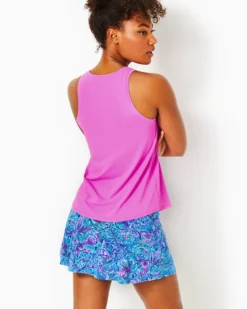 A high neckline and shirttail hem give this Luxletic® tank its streamlined silhouette. The Westley Tank is made from superbly soft Meryl® Nylon for moisture management and UPF 50+ sun protection.